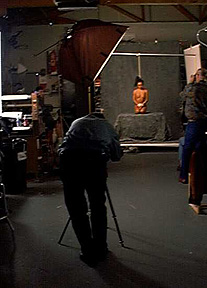 Morey adjusts the model's hair and rope prior to shooting. |